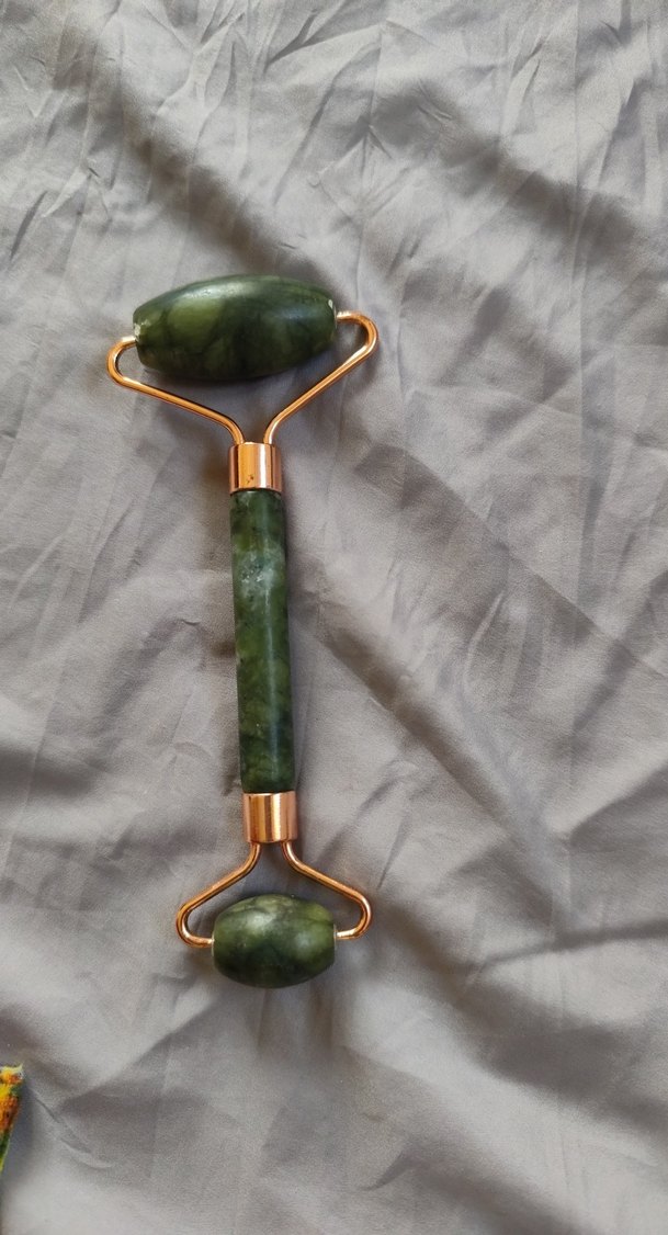İki farklı boyutta yuvarlak uçları olan doğal yeşim taşı yüz masaj aleti, cilt dolaşımını ve rahatlamayı destekler. ♀️