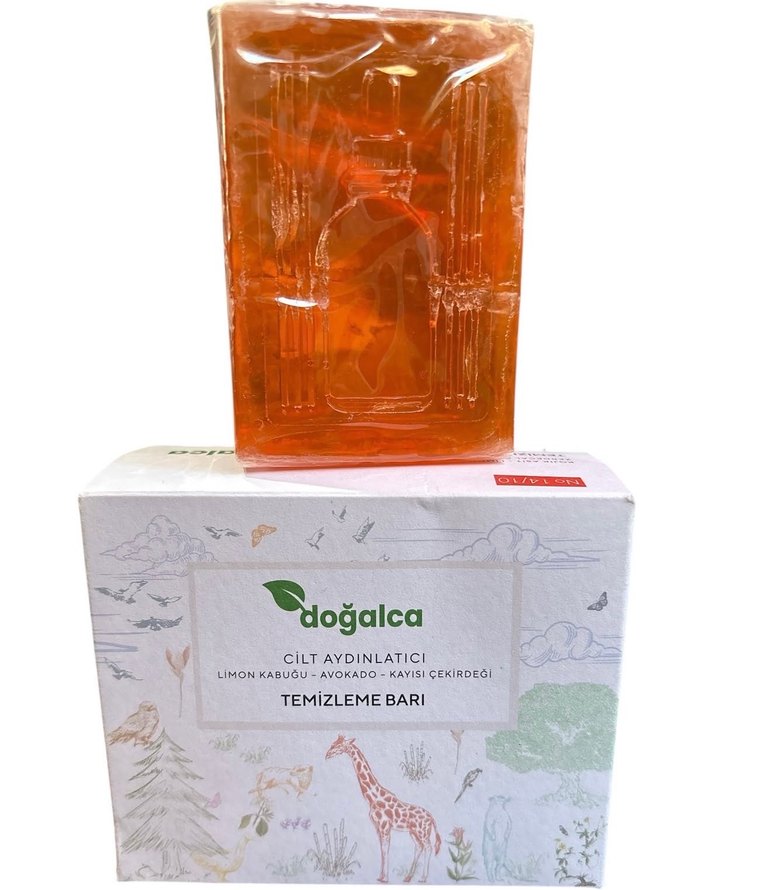 Limon kabuğu, avokado ve kayısı çekirdeği içeren Doğalca temizleme barı, cildi aydınlatır ve nazikçe temizler.