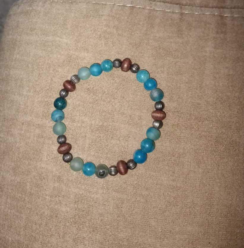 Turkuaz, ahşap ve metalik boncuklardan oluşan bağbozumu tarzda bileklik, günlük kullanım için uygundur.
