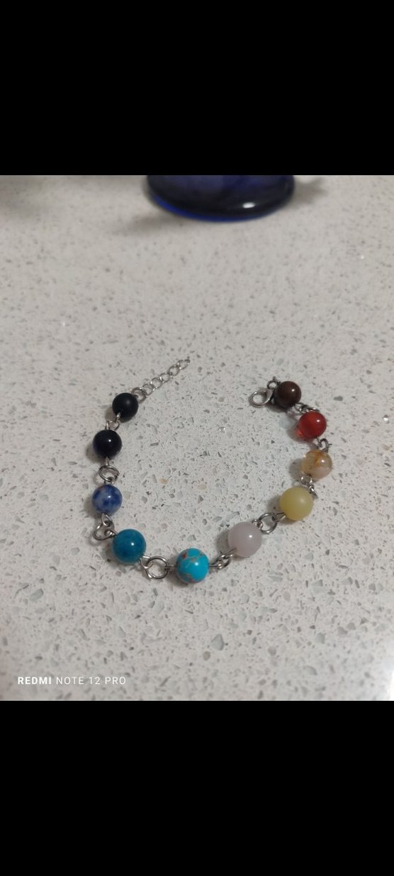 7 çakra bilekligi Çeşitli renkli boncuklardan oluşan, metal zincirle bağlı bohem tarzda bileklik. Günlük kullanıma uygundur.