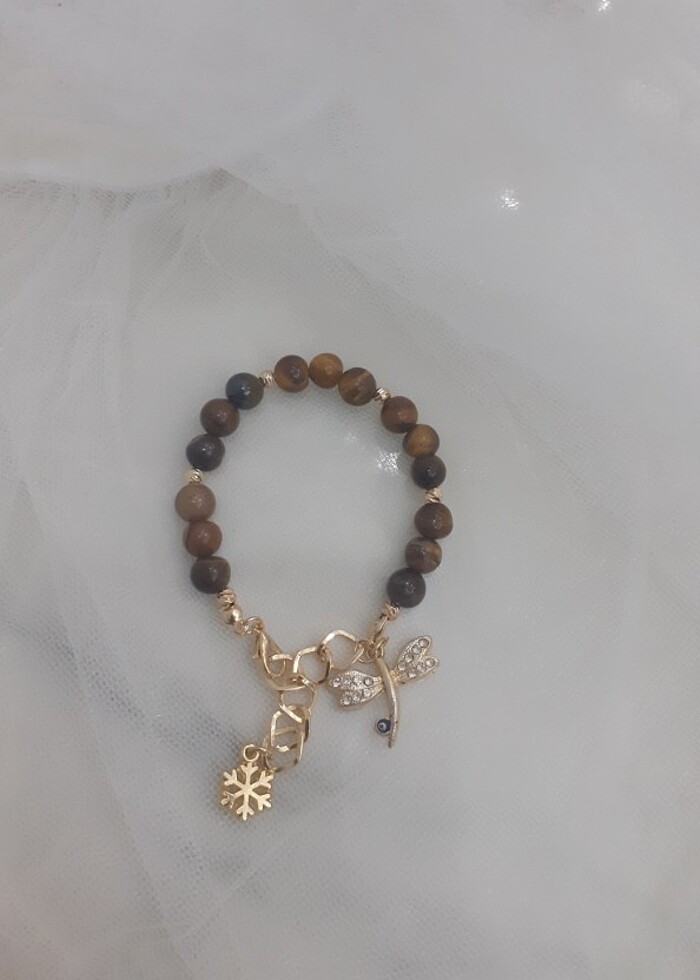 Kaplan gözü taşından yapılmış olup diğer aksesuarlar kaplama olup kolay kolay kararma yapmaz