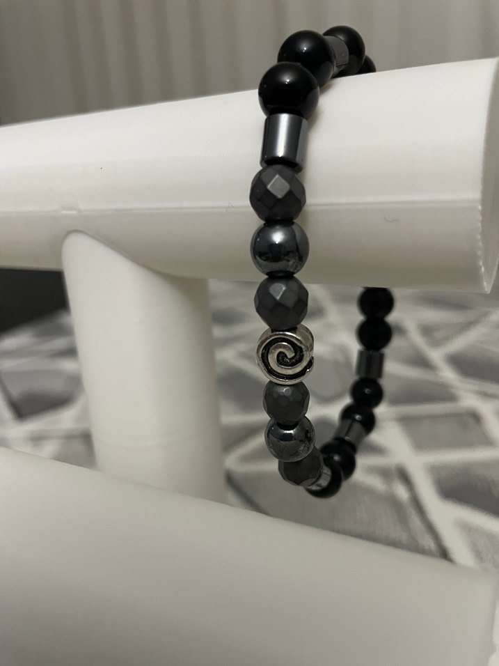 Siyah boncuklardan oluşan, yılan desenli gotik tarzda günlük kullanıma uygun rock punk havası taşıyan bileklik. El yapımı