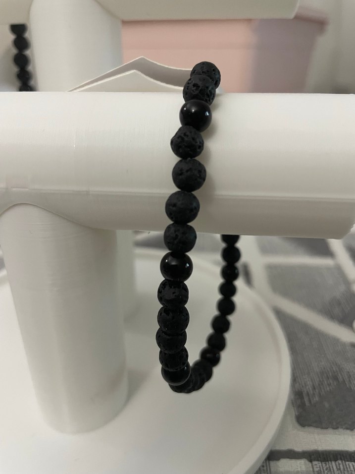 Doğaltaş Lav taşı Erkek Siyah Minimalist Gotik Bileklik