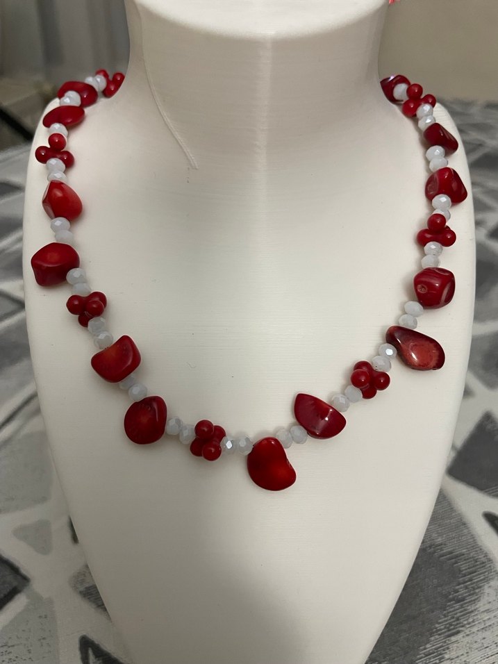 Ruhsal ve Enerjisel Etkileri: Koruyucu taş olarak bilinir; nazardan ve negatif enerjilerden koruduğuna inanılır. Yenilenme ve canlılık verir; kişinin hayata karşı isteğini artırır. 39 cm uzunlukta, kırmızı doğaltaş Mercan ve beyaz boncuklardan oluşan çağdaş tarzda kadın kolyesi. Bağlama deseni ile avangard bir dokunuş sağlar. ❤️