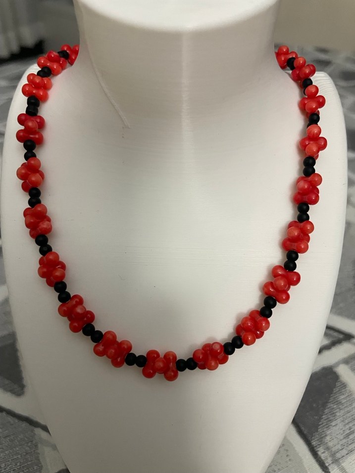 Ruhsal ve Enerjisel Etkileri: Koruyucu taş olarak bilinir; nazardan ve negatif enerjilerden koruduğuna inanılır. Yenilenme ve canlılık verir; kişinin hayata karşı isteğini artırır.Doğaltaş Mercan kolye Kırmızı ve siyah boncuklardan oluşan, tie-dye desenli, renkli ve minimalist gotik tarza sahip midi uzunlukta kadın kolye. Romantik buluşmalar için bohem ve retro havası sunar. Boncuk itibari ile uzunluğu 40,5 cm.