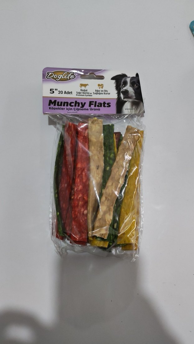 Doglife Munchy Flats, köpekler için 20 adetlik çiğneme ürünüdür. Diş sağlığını destekler ve lezzetli bir çiğneme deneyimi sunar.