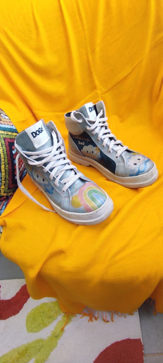 Gökkuşağı ve bulut figürlüdür. Çok sağlam ve rahat bir bottur. 36 numara.