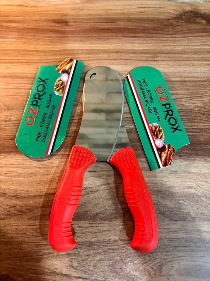 OZPROX kesme bıçağı, hamur, börek ve Salata için rahat tutuş sağlayan kırmızı saplı renkli tasarıma sahiptir.