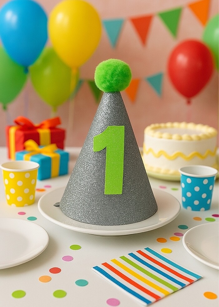 1 yaş doğum günü şapkası ( istenilen yaş için yapılır )