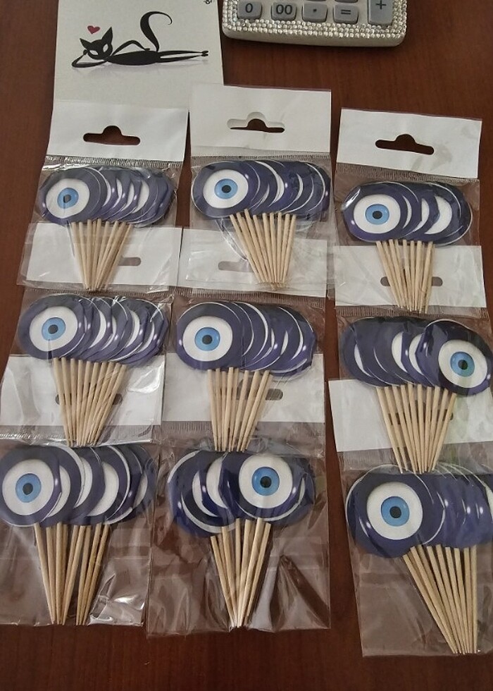 Nazar boncuklu kürdanlar. İster doğum gününde, ister kınanızda lokmalar için nazar boncuklu kürdanlar. Yazılı olan rakam paket fiyatıdır. Çoklu alımlarda pazarlık yapılabilir.