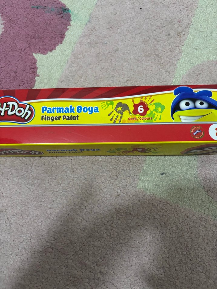 Doh Parmak Boya seti, 6 canlı renkten oluşur ve çocuklar için güvenli, kolay kullanımlıdır.