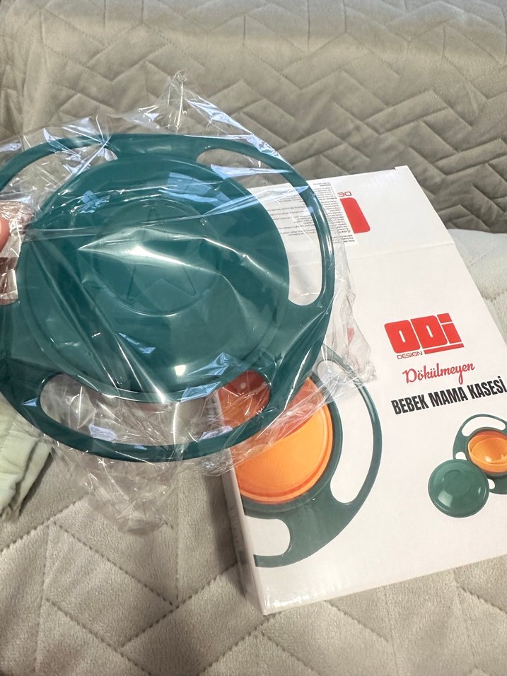 renkli, kulplu ve kaymaz tabanlı dökülmeyen bebek mama kasesi. Baskılı ve dayanıklı, temizlemesi kolay.