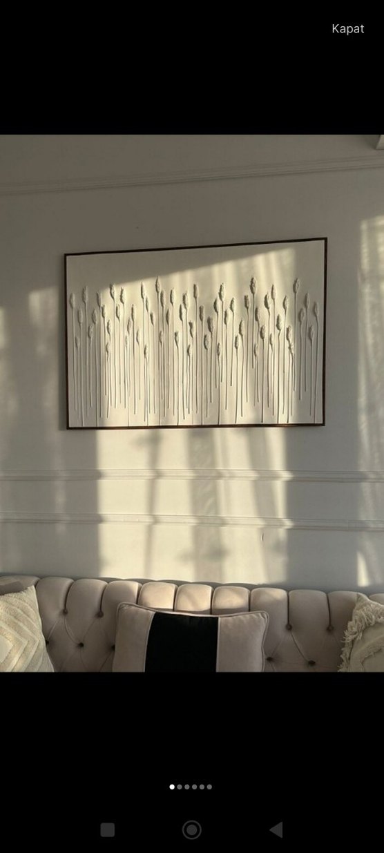 5.10 günde yapıyorum çerçevesiz kanvas üzerine Beyaz zemin üzerine kabartmalı tasarıma sahip, her mekana zarif bir dokunuş katan tablo.50*70 fiyatıdır büyük isterseniz fiyat değişir