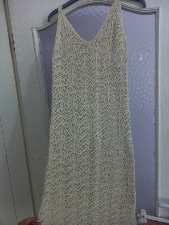 #plajelbisesi#pareo Ürünü Dolap'tan kızıma almıştım ama giyene kadar çok zayıfladı daha küçük bedenini aldım ve bunu satışa koyuyorum..Dokumadir, bej rengi..Sade ve zarif bir model..Yeni görünümlüdür ve esnektir..Boyu : 115 cm..İki koltuk altı arası: 50 cm ( 60 cm ye esniyor) Beli : 46 cm ama 50 cm ye esniyor ..