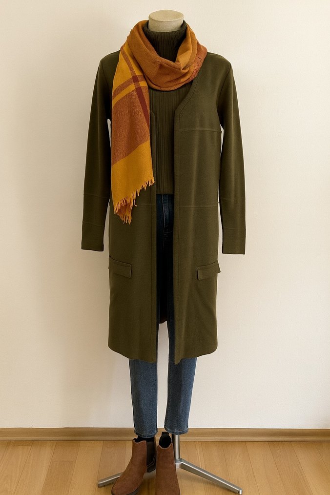 Dökümlü Kesim Uzun Kadın Hırka