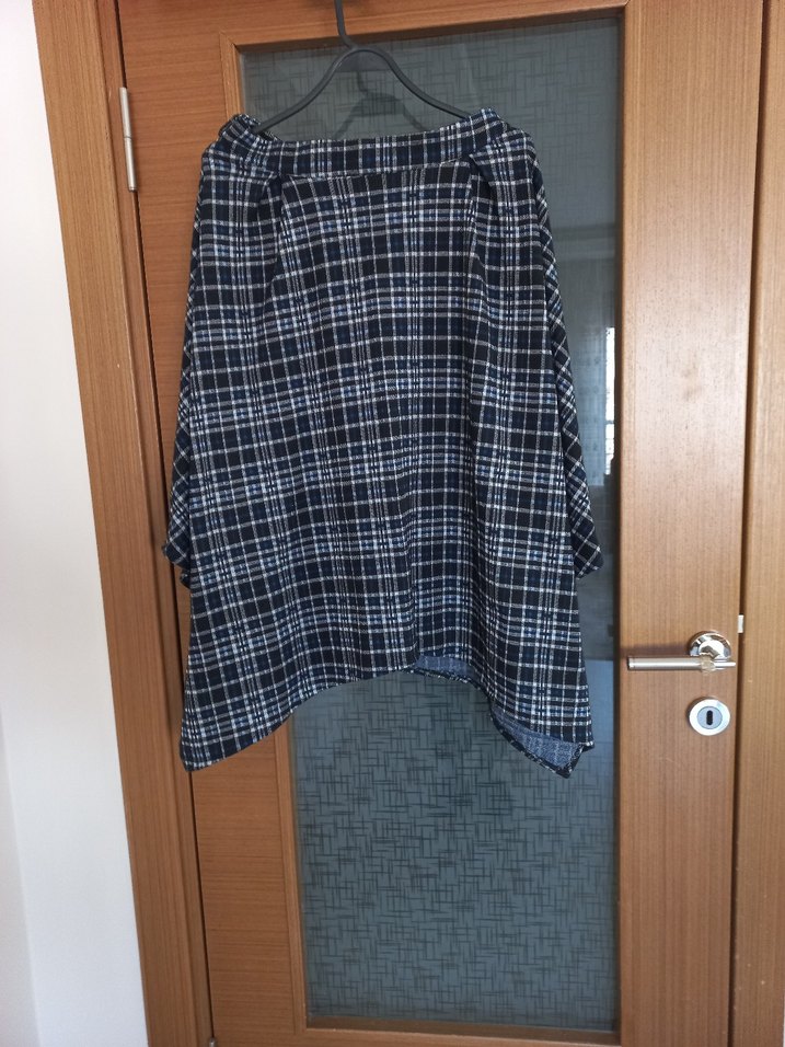 Dökümlü tasarımı ve koyu mavi ekose deseniyle hamileler için rahat, sentetik kumaştan midi boy etek. Günlük kullanıma uygundur.