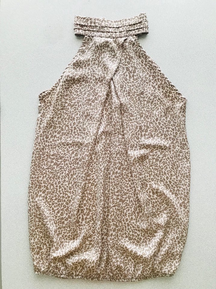 1 kez giyildi, yepyeni.Etek ucu lastikli,bej renginde,kumaşı esnek değil.Dar kalıp,S-M beden uyumlu. Ölçüleri: iki koltuk altı arası: 43 cm yaka uzunluğu:36,5 cm kol genişliği:23 cm koltuk altından boyu:46 cm yakadan boyu:68 cm Koltuk altı bol geldiği için terzide daralttırmıştım,görselde belirttim.