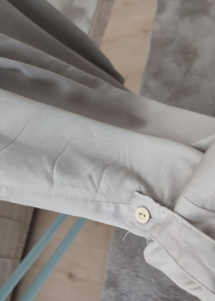 Sıfır üründür.kolları ve etek ucu dügmeli kullanilir. Rahat bir üründür. Rengi beje yakındır.