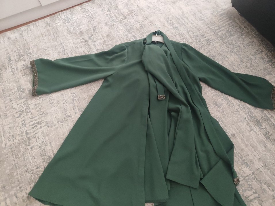 Dökümlü Yeşil kolları taşlı tesettür takım