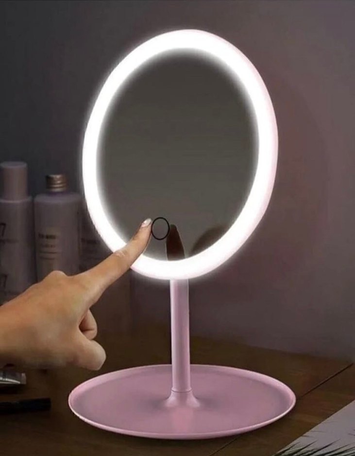 Dokunmatik Kontrol Işıklı Pembe Masa Aynası