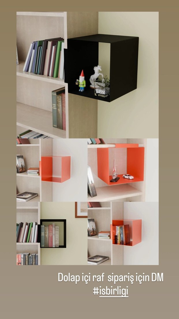 Kırmızı renkte, çocuklar için tasarlanmış canlı ve işlevsel bir raf. Kitap ve oyuncak düzenlemek için kullanılır. Sipariş için "Dolap içi raf siparis için DM
