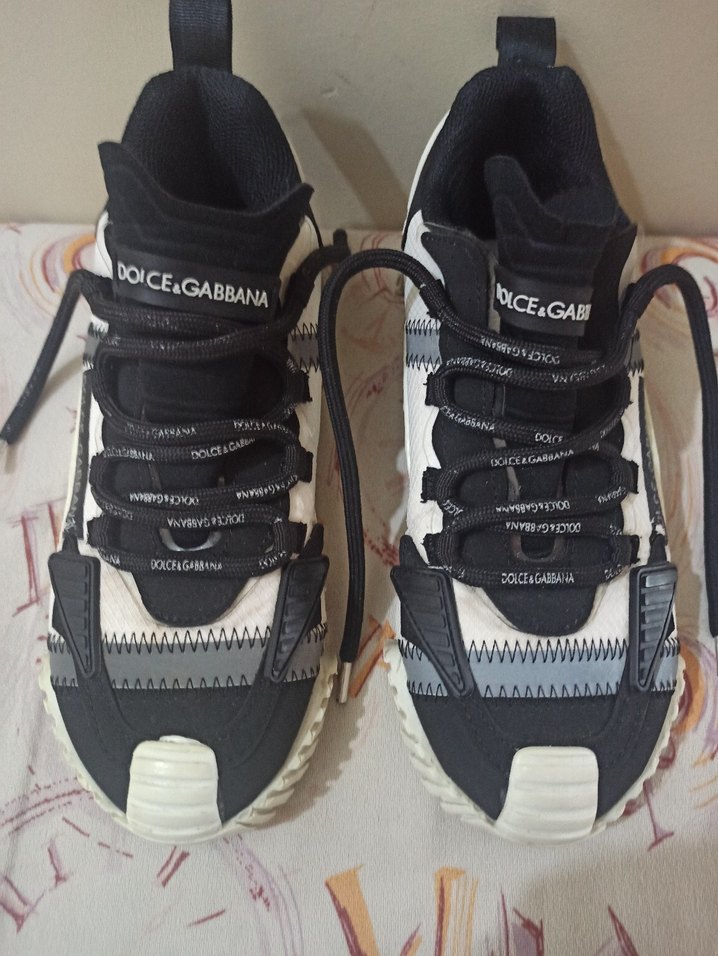 Dolce&Gabbana marka, baskılı ve bağcıklı spor ayakkabılar. Gri ve beyaz renklerle sokak stili ve spor şıklığı bir arada.