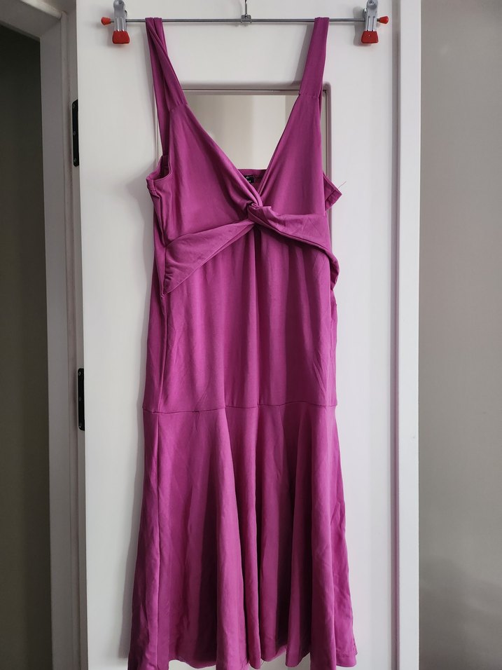 Kolsuz, pembe renkte, V yakalı ve drapeli tasarıma sahip pamuk saten esnek elbise..ister romantik akşamlar istersenuz bikini ustu çin uygundur.