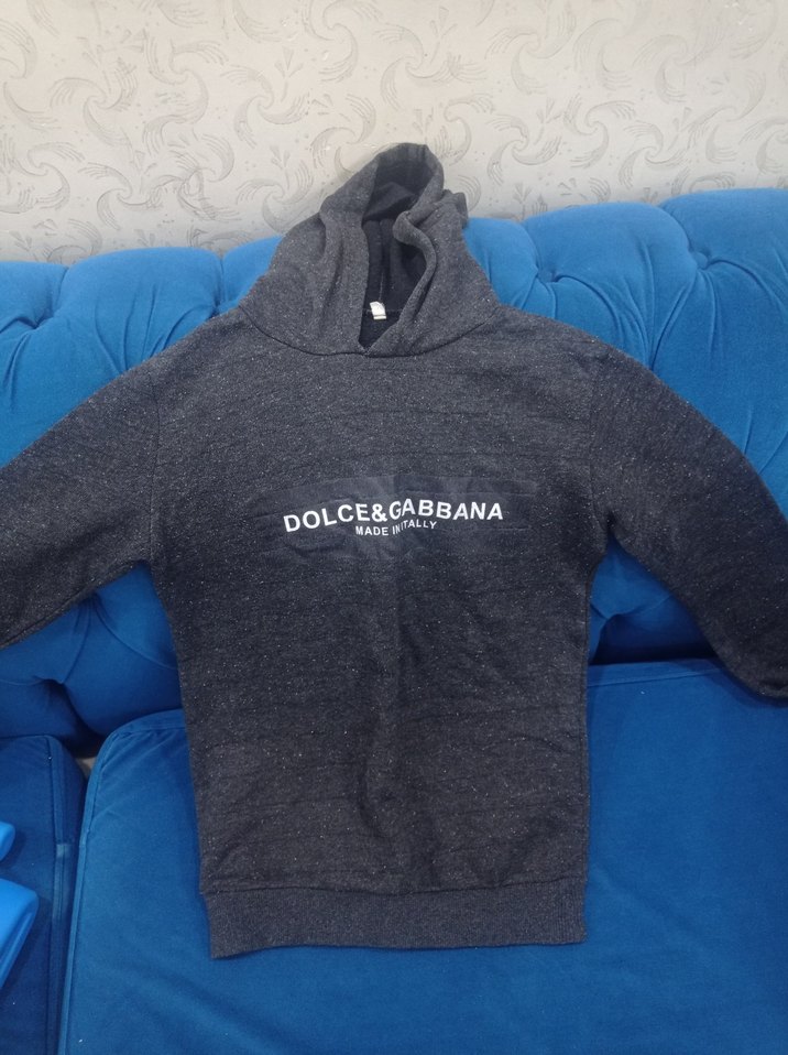 Dolce&Gabbana gri kapüşonlu sweatshirt, yumuşak ve sıcak kumaştan, baskılı logo,Günlük kullanım için uygundur. 10_11 yaş
