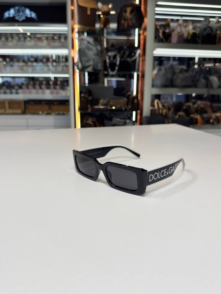 Dolce&Gabbana markalı siyah dikdörtgen güneş gözlüğü, kalın çerçevesi ve kollarındaki belirgin logo ile sokak stili ve zahmetsiz şıklığı bir araya getiriyor. ️