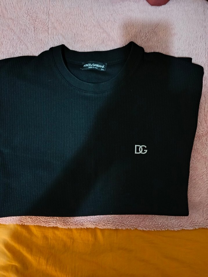 Dolce & Gabbana markalı, siyah, normal boyda, desen içermeyen, standart kesim erkek tişört. Küçük logo detayı bulunur.