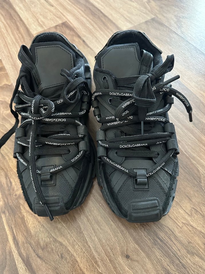 Dolce&Gabbana marka, siyah renkte, platform topuklu ve tokalı detaylara sahip spor ayakkabı. Kauçuk malzemeden, marka baskılı bağcıklarla dikkat çekiyor. Çok az kullanıldı yurt dışından geldi. Hiç sorunu yoktur.
