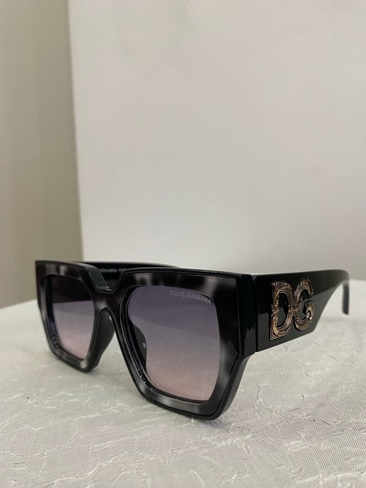 Kadınlar için siyah Dolce & Gabbana güneş gözlüğü, transparan çerçeve ve degrade camlara sahip. Yanlarda altın detaylı ikonik DG logosu bulunur, klasik şıklık ve streetwear tarzını birleştirir. ️