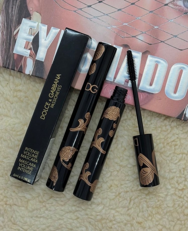 Dolce & Gabbana yoğun hacim maskara, koyu bej renkte, detaylı fırçasıyla dolgunluk sağlar. Tubede DG logosu şık görünüm sunar.