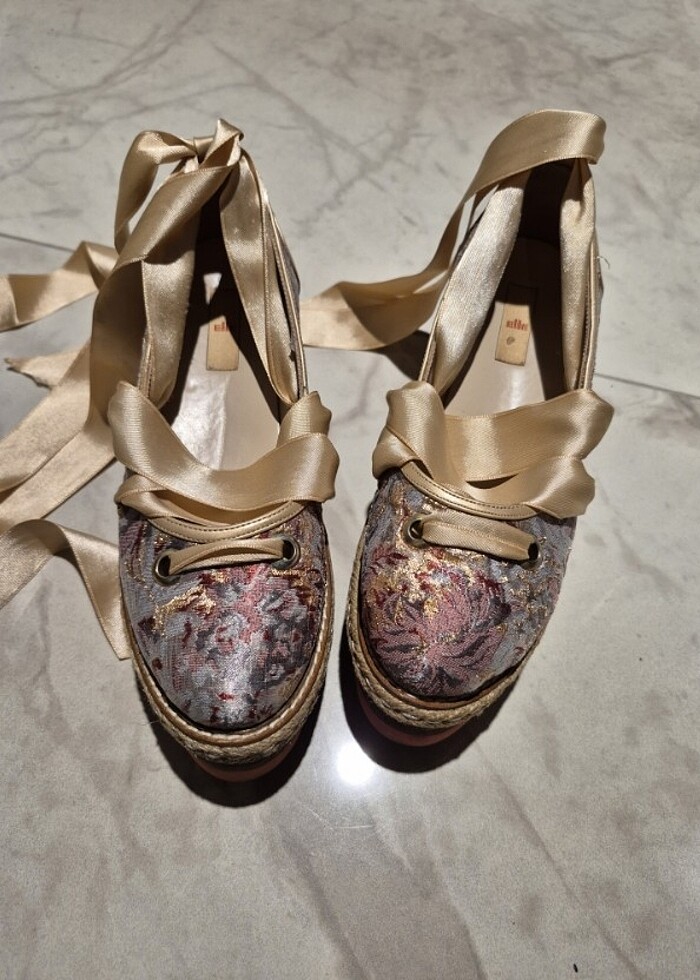 sadece 2 kere giydigim Elle marka dolgu topuk ayakkabim satiliktir. 7 cm topuga sahip ayakkabi, bilekten baglamali bir modeldir. 39 numara olup kendi kutusu ile gonderilecektir.