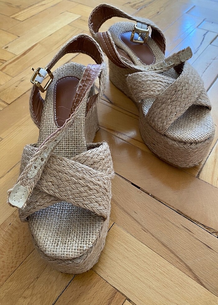 Sadece 1 kez kullandım ,önü kapalı modelini aldığım için bunu satmaya karar verdim,ayağım buçuklu (36,5) ama bu ayakkabıda 36 tam oldu ,herhangi bir sıkıntısı yoktur,arka topuk uzunluğu yaklaşık 7,5 cm ,ön topuk yüksekliği yaklaşık 3,5 cm #sandalet #dolgutopuk #ayakkabı #mango #zara #hotiç #defacto #koton #lcwaikiki