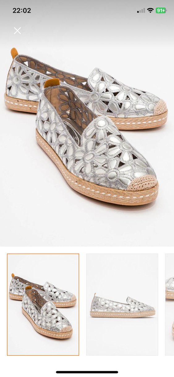 Gümüş renk, Nakışlı Dolgu Topuklu Espadril