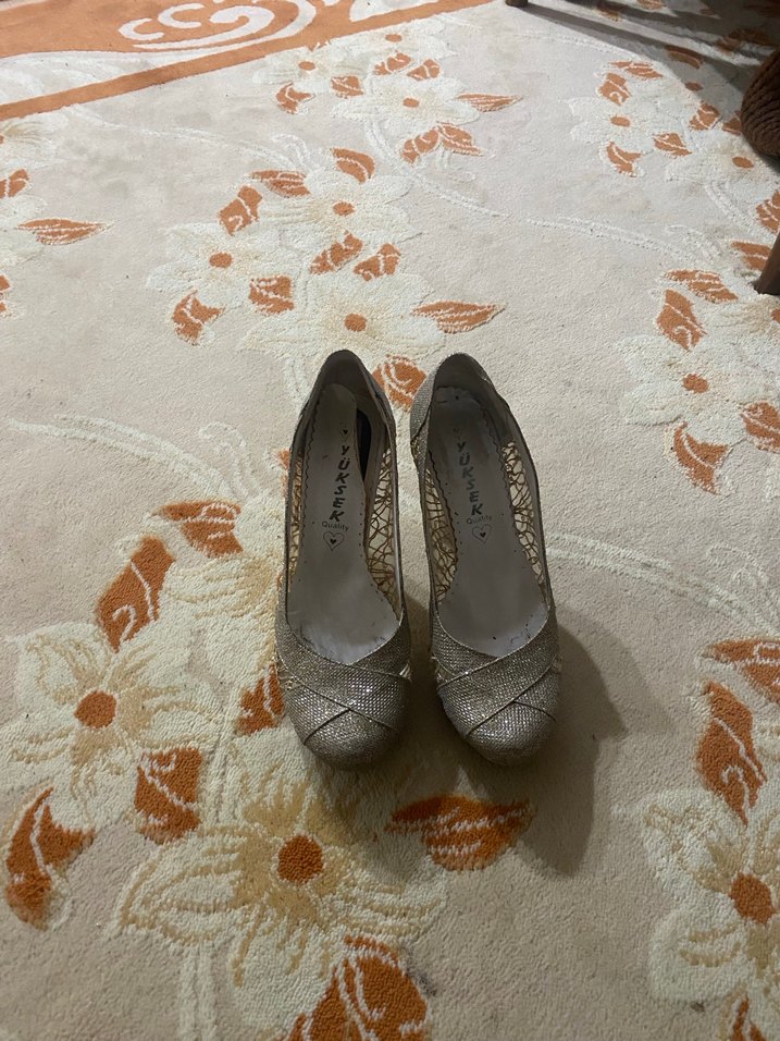 Bej yılan desenli, dantelli ve kauçuk malzemeden yapılmış dolgu topuklu kadın abiye ayakkabısı. Düğün ve klasik şıklık için uygundur. 37 numara