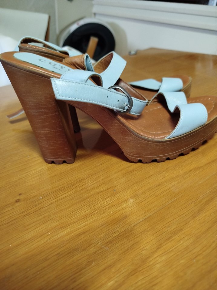 ürün sıfırdır Dolgu topuklu mavi kauçuk sandalet. Minimalist ve çağdaş tasarım, günlük kullanım için uygundur.