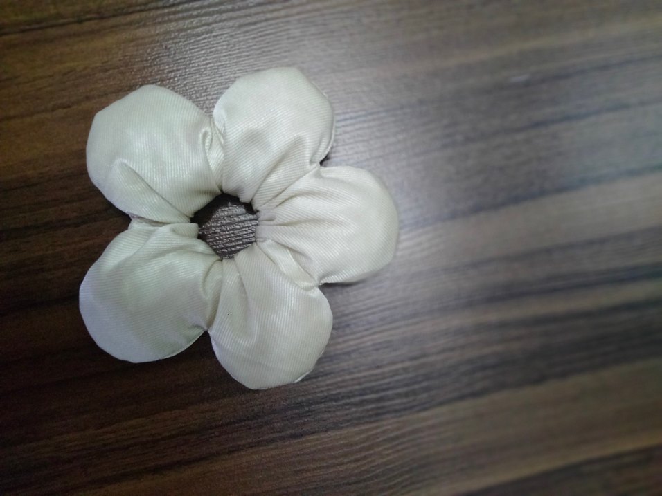 Dolgulu parlak krem renginde çiçek toka el emeği kibar hoş görünümlü