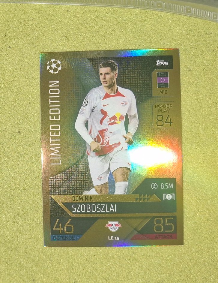 Dominik Szoboszlai'nun RB Leipzig formasıyla yer aldığı sınırlı üretim altın badge, hücum ve saldırı değerleri ile önemli detayları içerir. ⚽