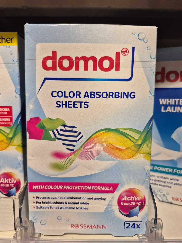 Domol renk koruyucu emici yapraklar, giysilerin renk solmasını ve grileşmesini önler. Tüm yıkanabilir tekstiller için uygundur, canlı renkler ve parlak beyazlar sağlar. 24 yaprak içerir.