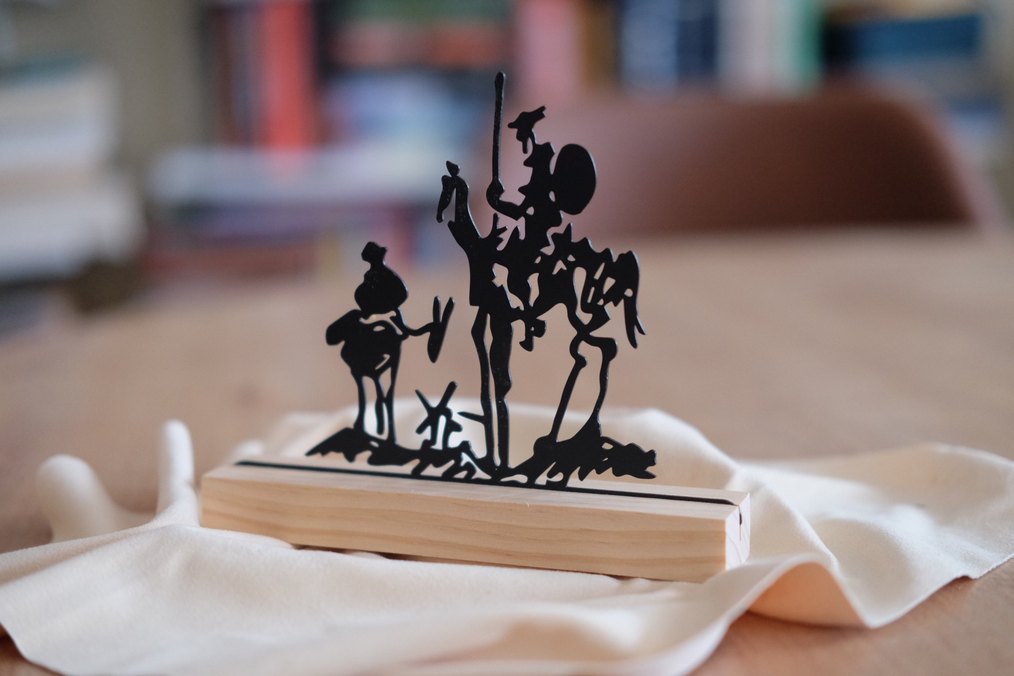 Cervantes’in ölümsüz eseri Don Kişot, şimdi çalışma masanızda veya kitaplığınızda size ilham veriyor. Lazer kesim metal işçiliği ve doğal ahşabın sıcaklığını buluşturan bu minimalist tasarım, hem modern hem de nostaljik bir hava sunuyor. Malzeme: Siyah mat metal & Masif ahşap kaide. Son görseldeki gibi açılmamış paketinde gönderilir.