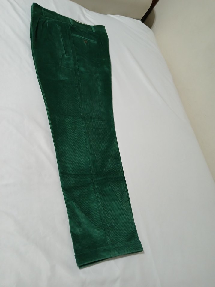 DON RODD AVRUPA YÜKSEK BEL KADİFE PANTOLON Kusuru yoktur yeni gibidir Yeşil kadife yumuşak pamuk kumaştan, iki pileli çift arka cepli yüksek bel kesim erkek pantolon. Midi boyunda, desen içermeyen sokak tarzı model, ofis kullanımı için uygun. 50 beden ölçüler fotoğrafta var ölçüye göre alım yapınız diğer ürünlerimize bakmayı unutmayın günlük kullanıma uygun