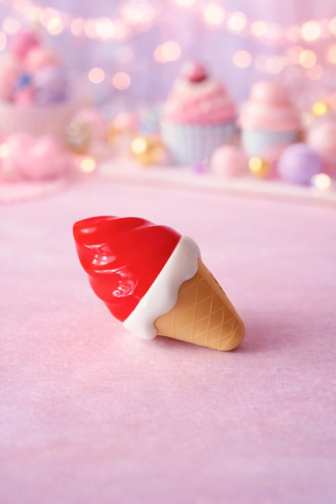 Renkli ve dondurma külahı şeklinde dudak Balmı, makyaj koleksiyonunuza eğlenceli bir dokunuş katar.