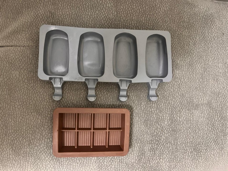 Dört gözlü gri dondurma kalıbı ve sekiz bölmeli kahverengi çikolata kalıbı seti, kolay kullanım için uygundur. Hiçbir kusurları yoktur