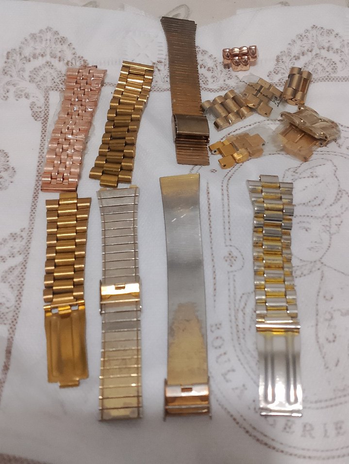 dönem ürünü koleksiyonluk 16 milimlik altın kaplama tek taraflı kordon parçaları ve Kordon baklaları tek taraflı Kordon parçaları 150 TL baklaların adet fiyatı 50 TL üçlü baklalar 150 ikili bakkalarda 100 TL'dir ⌚