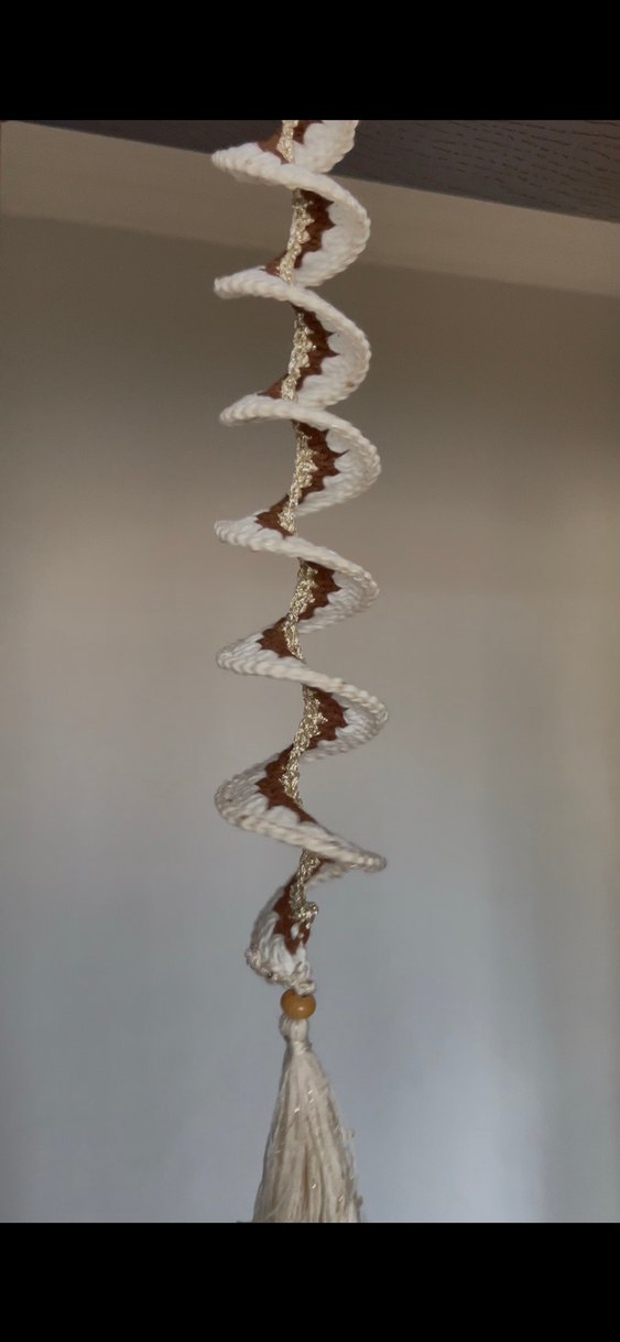 Kahverengi simli desenli ve püsküllü, bej renkli bohem tarzda ev dekoru. Günlük kullanıma uygun, evinizin enerjisine uyum sağlar ✨