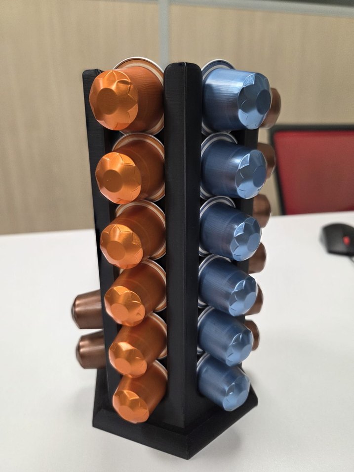 Çok sayıda kahve kapsülünü saklamak için bölmeli siyah döner kahve kapsülü standı. ☕ ürünleri kendimiz yapıyoruz etiket bulunmuyor
