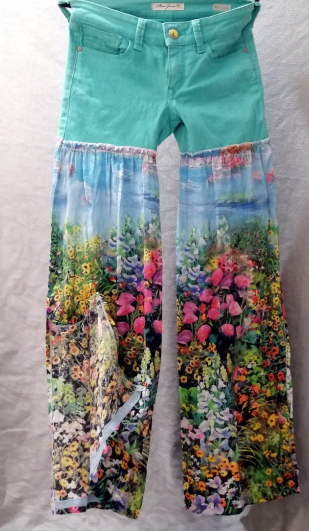Dönüştürülmüş Jean pantolon Bohem Çiçek Desenli Pantolon