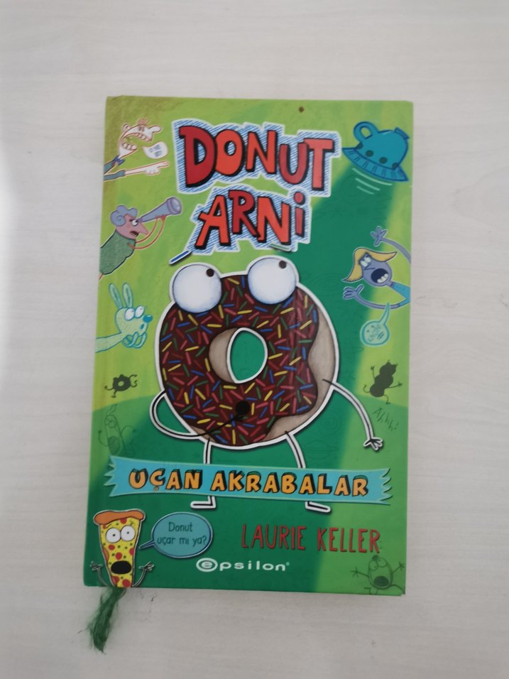 Donut Arni, Laurie Keller'in eğlenceli çizimleriyle uçan bir donut karakterinin maceralarını anlatıyor. Komik ve renkli bir kitap. Ciltli karton kapak. Tertemiz yeni gibi
